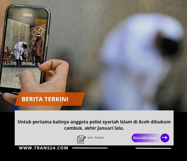 Aceh, // trans24.id //-Hukuman cambuk itu dijatuhkan kepada sang polisi syariah karena dia didapati berhubungan seks atau bermesraan di luar pernikahan serta mengonsumsi alkohol.