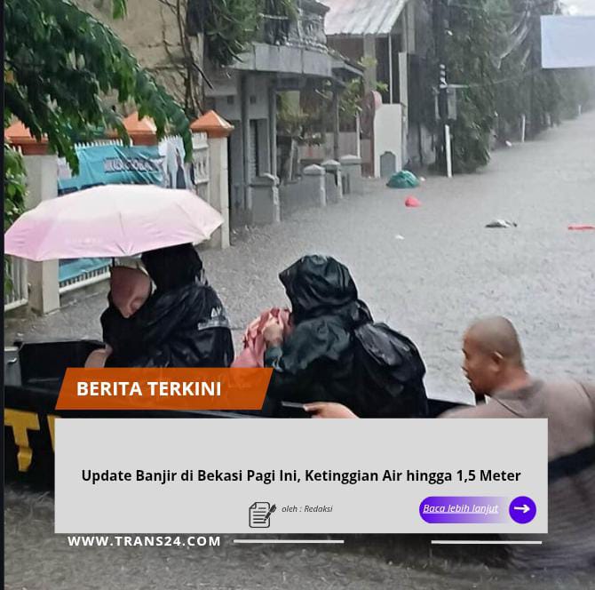 Jakarta, // trans24.id //- Kota Bekasi dilanda banjir pagi ini. Ketinggian air bervariasi, salah satu titik ada yang melaporkan hingga 150 cm atau 1,5 meter.