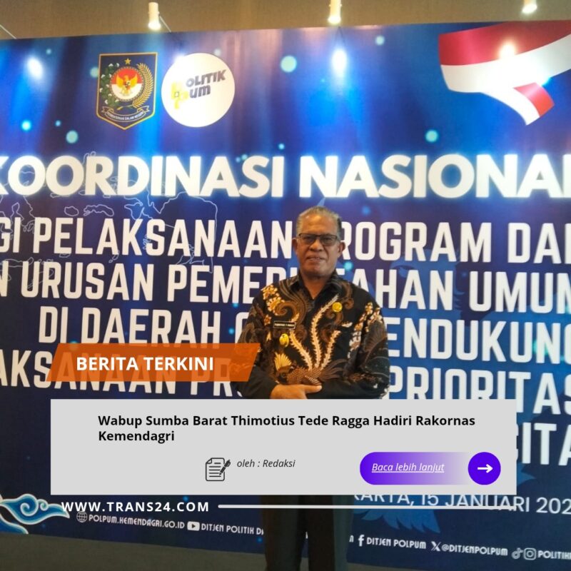Jakarta//trans24.id — Wakil Bupati Sumba Barat, Nusa Tenggara Timur (NTT), Thimotius Tede Ragga, menghadiri Rapat Koordinasi Nasional (Rakornas) yang di selenggarakan Kementrian dalam negeri dengan tema Sinergi Pelaksanaan Program dan Kegiatan Urusan Pemerintahan Umum di Daerah Guna Mendukung Pelaksanaan Program Prioritas Presiden dan Asta Cita. Kegiatan tersebut digelar di Ballroom Hotel Pullman Central Park, Jakarta, Kamis (15/1/2026).