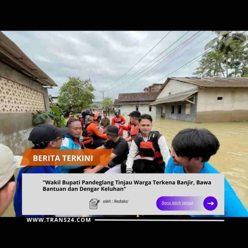 PANDEGLANG//trans24.id – Wakil Bupati Pandeglang, Iing Andri Supriadi, S.H., meninjau langsung kondisi warga terdampak banjir di Desa Bulagor, Kecamatan Pagelaran, Rabu (14/1/2026). Kehadiran orang nomor dua di Pandeglang ini disambut antusias oleh warga, mulai dari orang dewasa hingga anak-anak yang memadati lokasi.