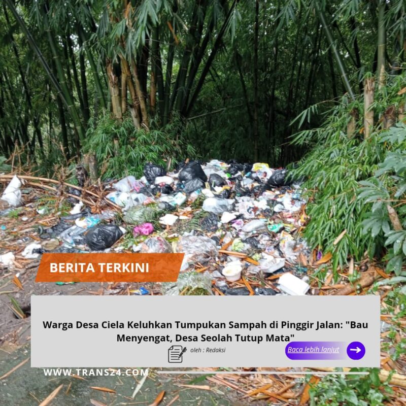 GARUT, // trans24.id //– Aroma tidak sedap kini menjadi santapan sehari-hari bagi warga dan pengguna jalan di wilayah Kampung Ciela Tonggoh, RT 02 RW 06, Desa Ciela. Pasalnya, tumpukan sampah liar di pinggir jalan desa kian menggunung dan mulai mengganggu aktivitas masyarakat.