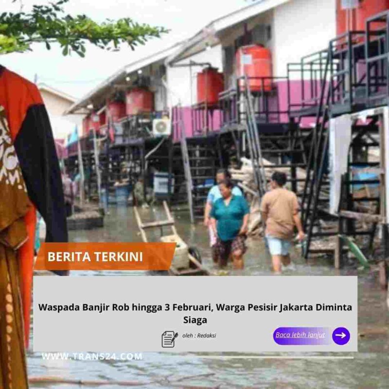 Jakarta, // trans24.id //- Badan Penanggulangan Bencana Daerah (BPBD) DKI Jakarta mengimbau warga yang bermukim di kawasan pesisir Pantai Utara Jakarta agar waspada terhadap potensi banjir pesisir atau rob. BPBD mengimbau warga waspada hingga 3 Februari 2026.