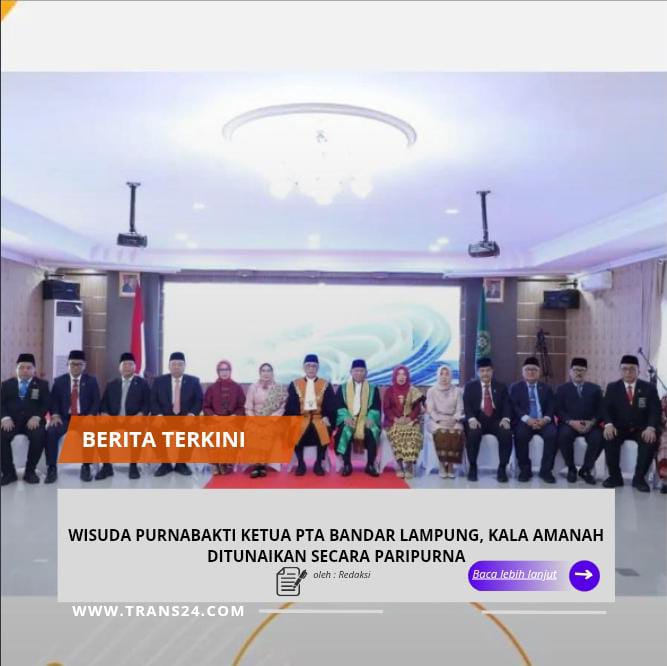 Bandar Lampung, // trans24.id //– Humas: Ketua Mahkamah Agung (MA) Republik Indonesia, Prof. Sunarto, S.H., M.H. memimpin prosesi wisuda purnabakti Ketua Pengadilan Tinggi Agama (PTA) Bandar Lampung, Drs. Syahrudin, S.H., M.H.I., pada Kamis (29/1). Acara tersebut menjadi penanda berakhirnya masa bakti Syahrudin setelah mengabdikan diri selama kurang lebih 37 tahun di lembaga peradilan, khususnya di lingkungan peradilan agama.