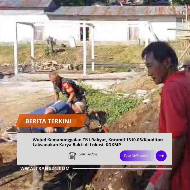 MINAHASA UTARA//trans24.id  – Anggota Kodim 1310/Bitung bersama perangkat Desa Kauditan Dua melaksanakan kegiatan Karya Bakti pembersihan lahan pembangunan di lokasi Koperasi Desa/Kelurahan Merah Putih (KDKMP) yang bertempat di Desa Kauditan Dua Kec. Kauditan Kab. Minahasa Utara, Kamis (15/1/2026).