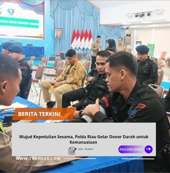 Pekanbaru, // trans24.id //- Bidang Kedokteran dan Kesehatan (Biddokkes) Polda Riau menggelar aksi kemanusiaan donor darah yang diikuti personel Polri dan masyarakat. Antusiasme peserta yang hadir melebihi target awal penyediaan 50 kantong darah.