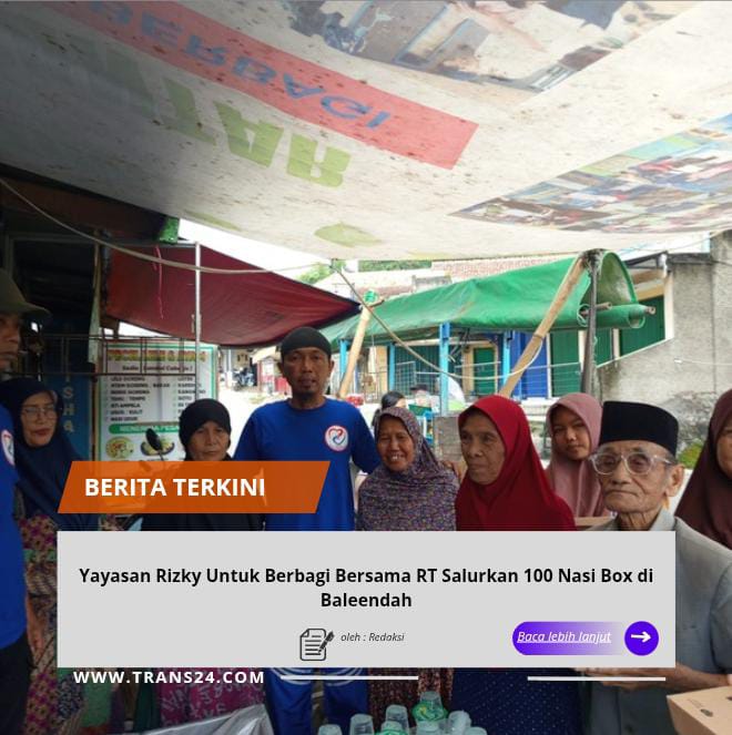 BANDUNG, // trans24.id // — Yayasan Rizky Untuk Berbagi bersama RT setempat menggelar kegiatan sosial dengan menyalurkan 100 nasi box kepada fakir miskin, mualaf, musafir, serta anak yatim piatu. Kegiatan tersebut dilaksanakan di Jl. Kiastramanggala No. 11, Baleendah, Kabupaten Bandung.